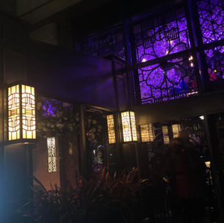 It is clear that this restaurant is trendy. Upon entering, you are met with white cherry blossom trees illuminated with purple lights. Chinese calligraphy adorn the walls, moving and projected. Mirrors double the space and the dark floors create a sleek ambience.